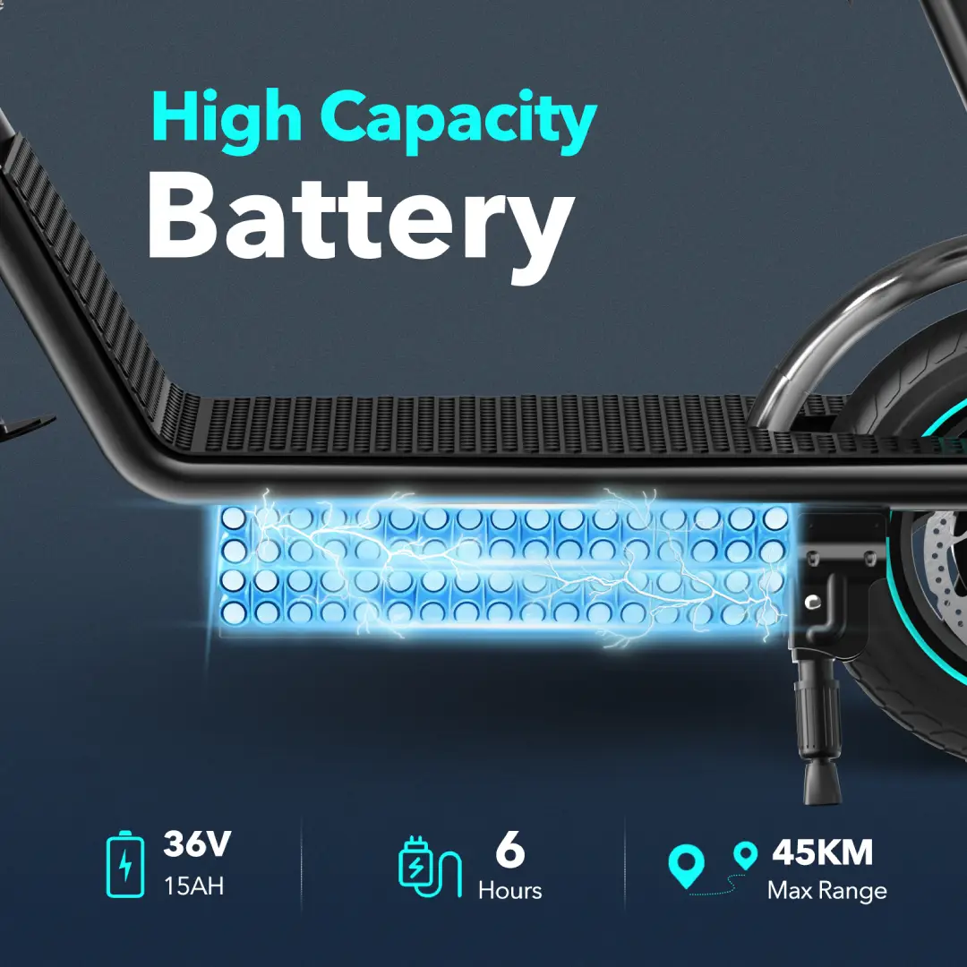 * Pri mjerenju maksimalne brzine i dometa vozilo je pod opterećenjem od 70 kg, na potpuno ravnoj podlozi u interijeru, na 25 stupnjeva celzija. Sa promijenjenim parametrima maksimalna brzina i domet će biti ispod navedenih. Kliknite za savijet kako bateriji produžiti vijek trajanja.